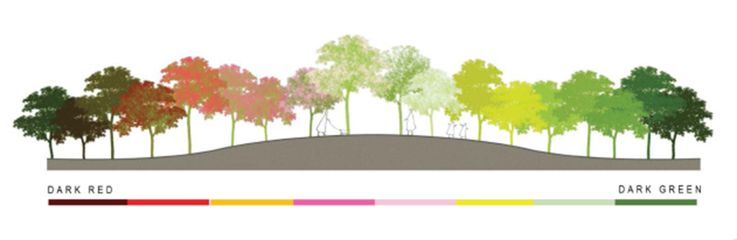 Flowering trees will be planted along ridge, providing a colourful backdrop to the terraced water garden.