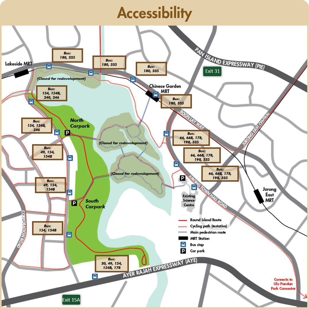 Most of the existing features and familiar landmarks will be retained and enhanced as they hold special memories for Singaporeans. Working with the existing landform and water, the scenic views and naturalised ambience of the gardens will be retained. New garden features will be added to the Chinese Garden to bring out the theme of the garden artistry.