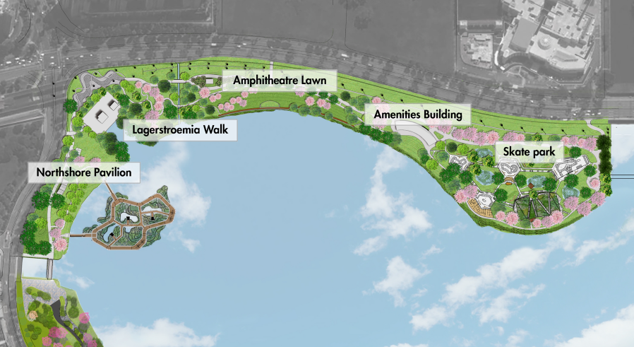 The northern strip of Lakeside Garden will have a lawn, a pavilion and a youth park.